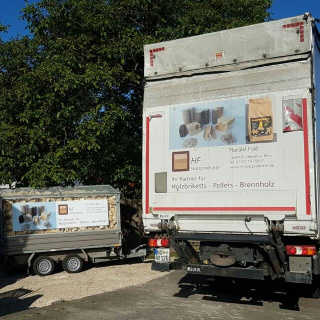 Die Anlieferung der Holzbriketts und des Brennholzes erfolgt mit unserem Tandem-Achs-Anhänger an unserem PKW. Die Lieferung erfolgt grundsätzlich frei Bordsteinkante. Die Menge pro Anfahrt beträgt 2 Paletten bzw. maximal 2,5 Tonnen.